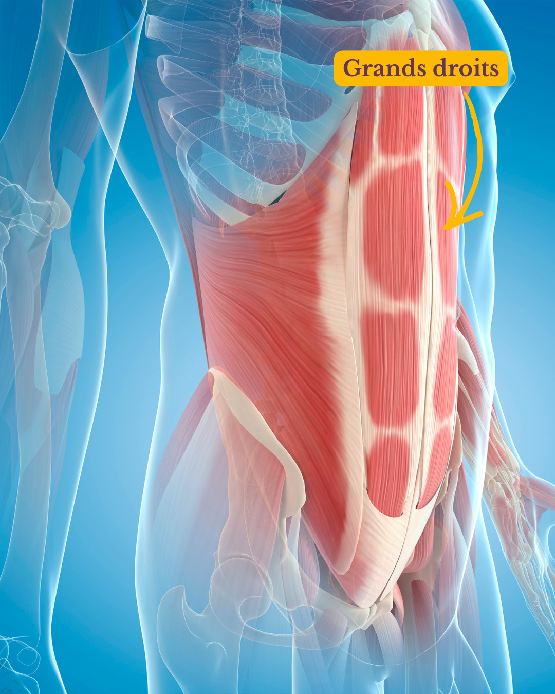 1️⃣ Les grands droits de l’abdomen (le fameux « six-pack »)